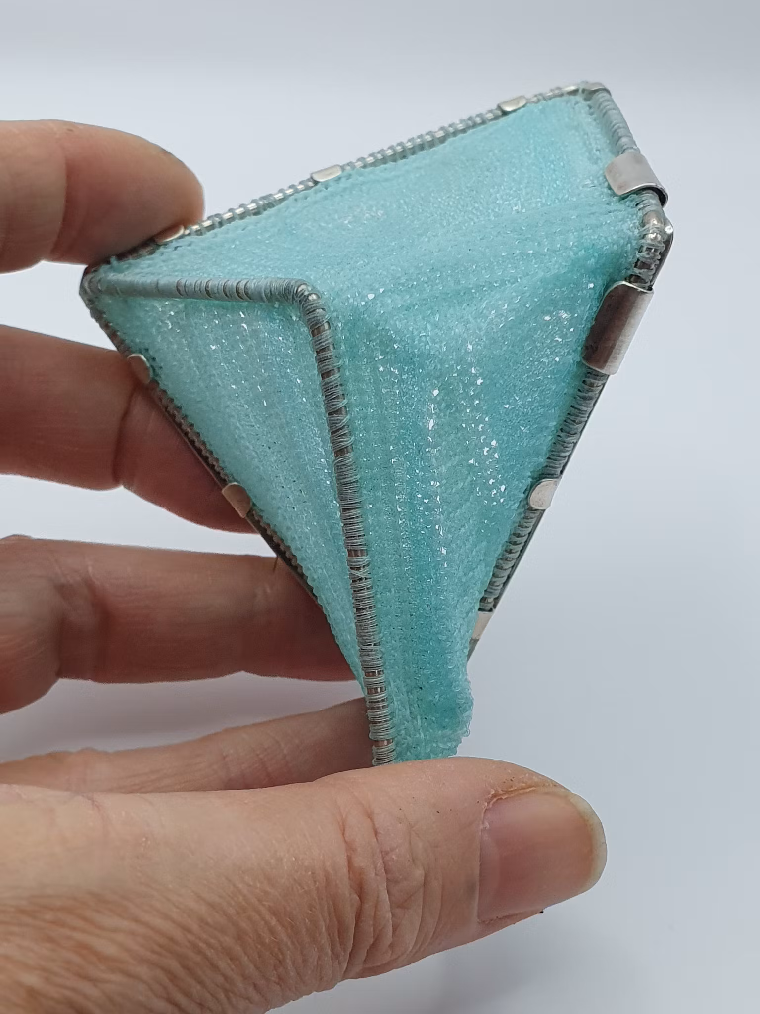 Mintgrön geometri 5 500 kr Brosch av virkat spökgarn på stomme av sterlingsilver. Nål av pianotråd. Mått: ca 12 x 8 cm. I lager. Lägg i korgen Dela Artikelnummer: 37 Information Brosch av virkat spökgarn på stomme av sterlingsilver. Nål av pianotråd. Mått: ca 12 x 8 cm.