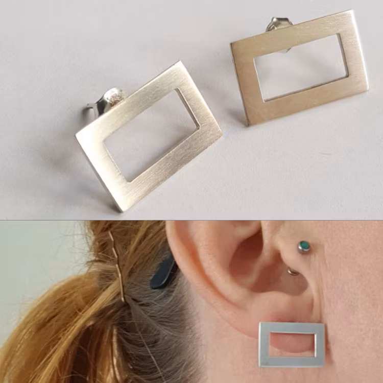 Stiftörhängen Sterlingsilver 950 kr Handsågade rektanglar i sterlingsilver (925-1000 silver). Örstift och snurrebuss i sterlingsilver. Yta: Borstad. Mått: 1,3 cm X 1,9 cm Format Stående rektangel Liggande rektangel I lager. Lägg i korgen Dela Lagersaldo: Artikelnummer: 10 Information Handsågade rektanglar i sterlingsilver (925-1000 silver). Örstift och snurrebuss i sterlingsilver. Yta: Borstad. Mått: 1,3 cm X 1,9 cm